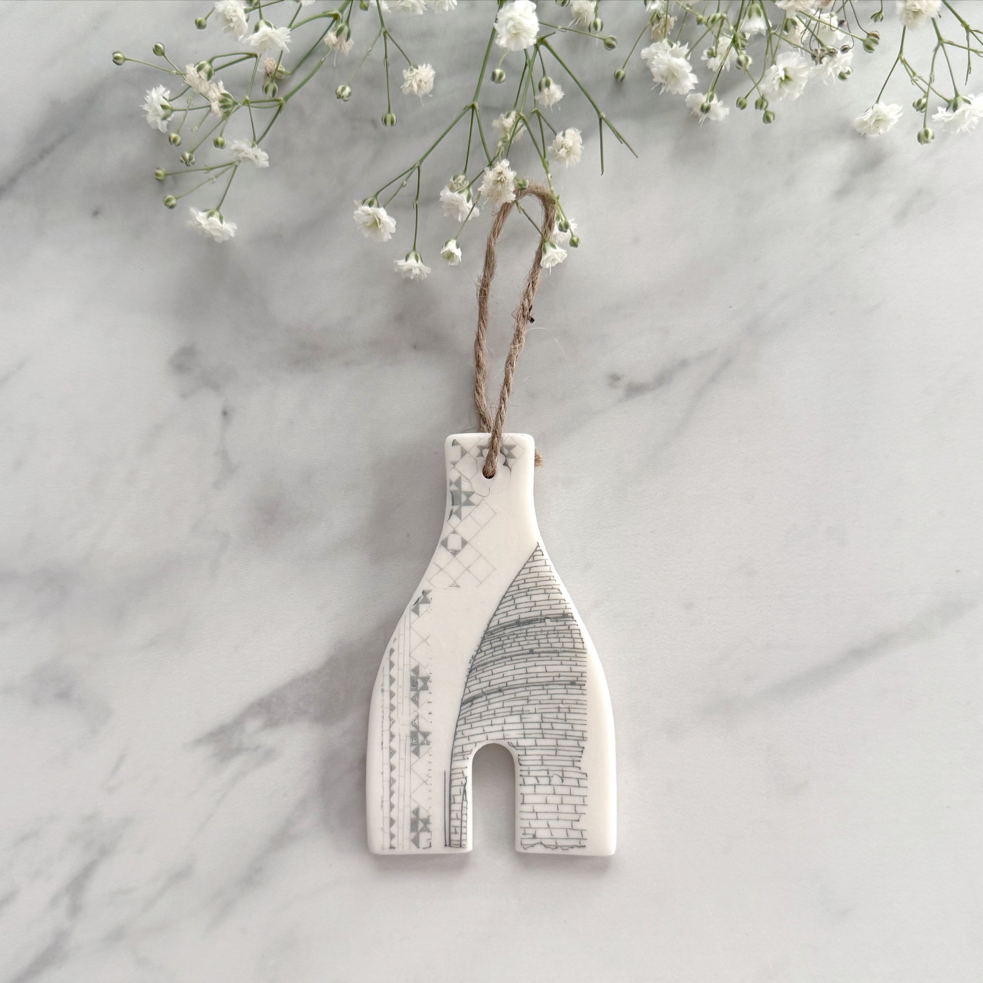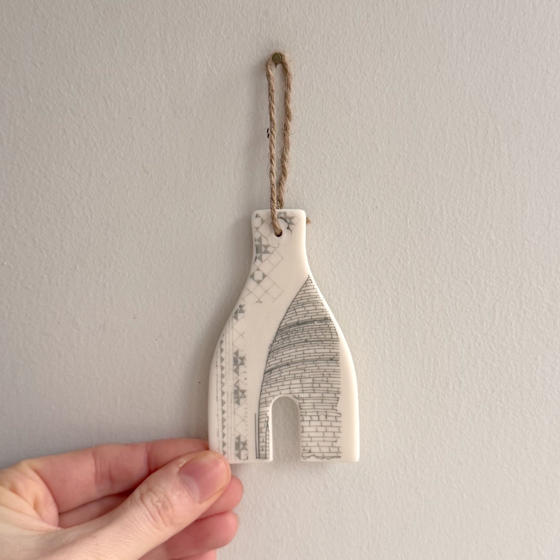 Handmade Porcelain Bottle Kiln Decoration (Design 2) with transfer prints