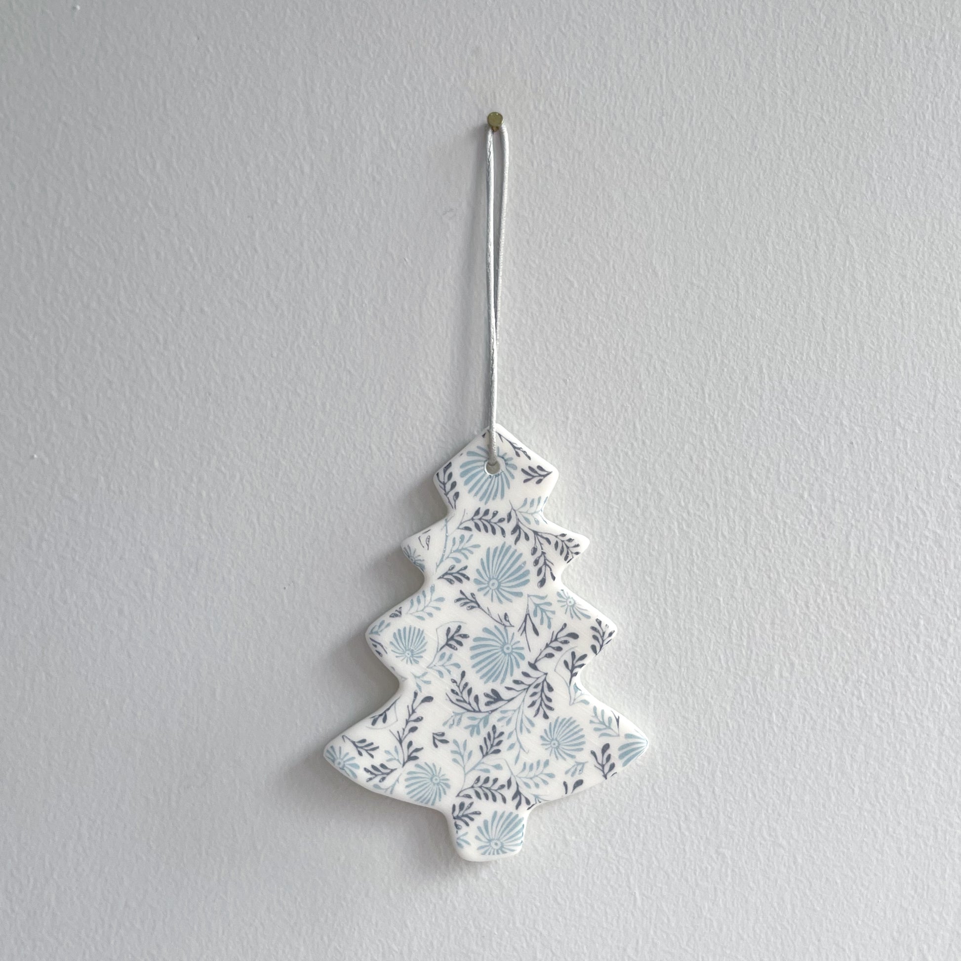 Handmade Porcelain Tree decoration with hand drawn floral transfer print.