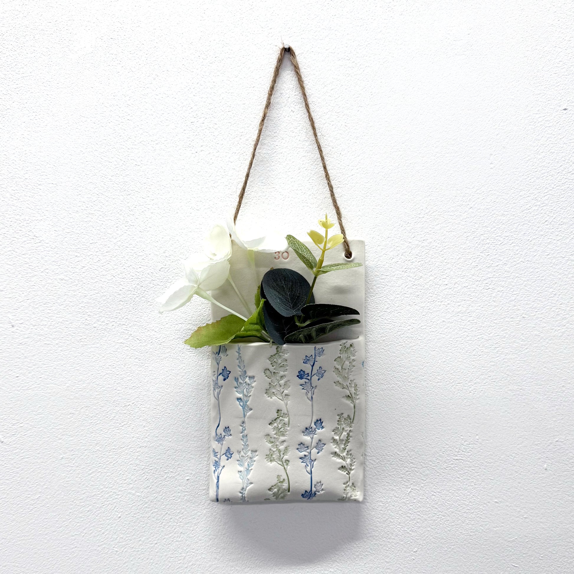 Spend a relaxing couple of hours learning how to hand build in porcelain, along with how to apply a variety of surface decoration techniques using coloured slips, different tools and objects to create sgraffito, textures and patterns on your own beautiful hanging planter pocket. Once fired the pockets are watertight so you can display real flower stems in them.