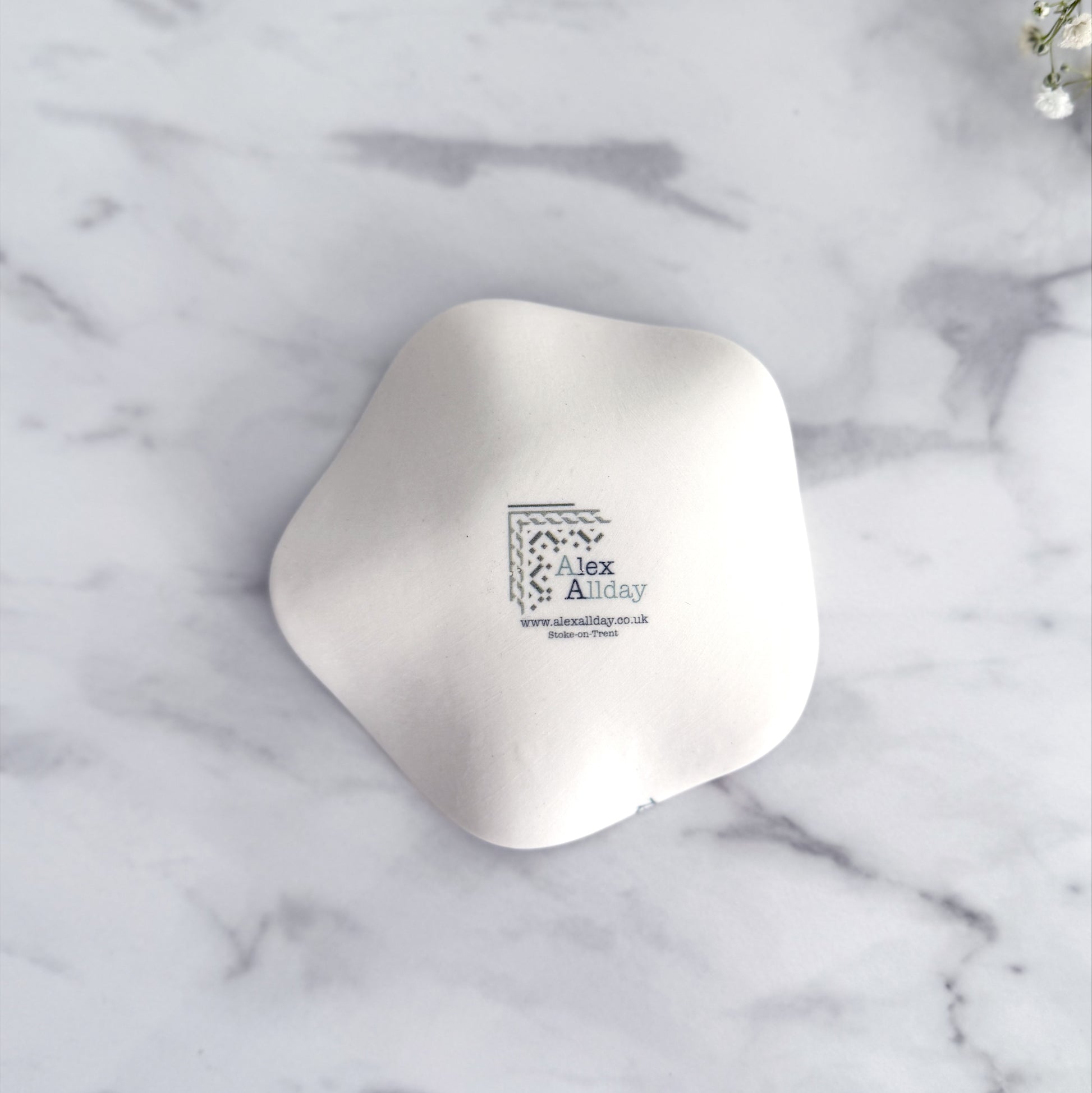 Please note that these trinket dishes are all individually handmade in small batches so there may be very slight differences in the finished size, shape and the colour shown due to different firings and print runs.